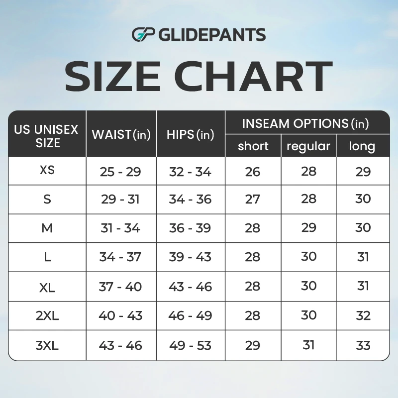 GlidePants are made from soft and moisture-wicking fabric to ensure a silky smooth, moisture-free touch to the skin, so you can lead an active lifestyle without sacrificing comfort!